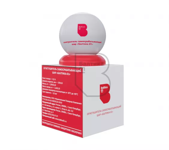 Огнетушитель самосрабатывающий Шар “Балтика-01” – это устройство пожаротушения, которое представляет собой порошковый огнетушитель с возможностью использования как в ручном, так и в самосрабатывающем режиме. Предназначено для использования в качестве первичного средства тушения очагов пожаров на начальной стадии, т.к. огнетушащее вещество (порошок) является универсальным средством тушения и используется при тушении пожаров классов А, В, С, Е.
