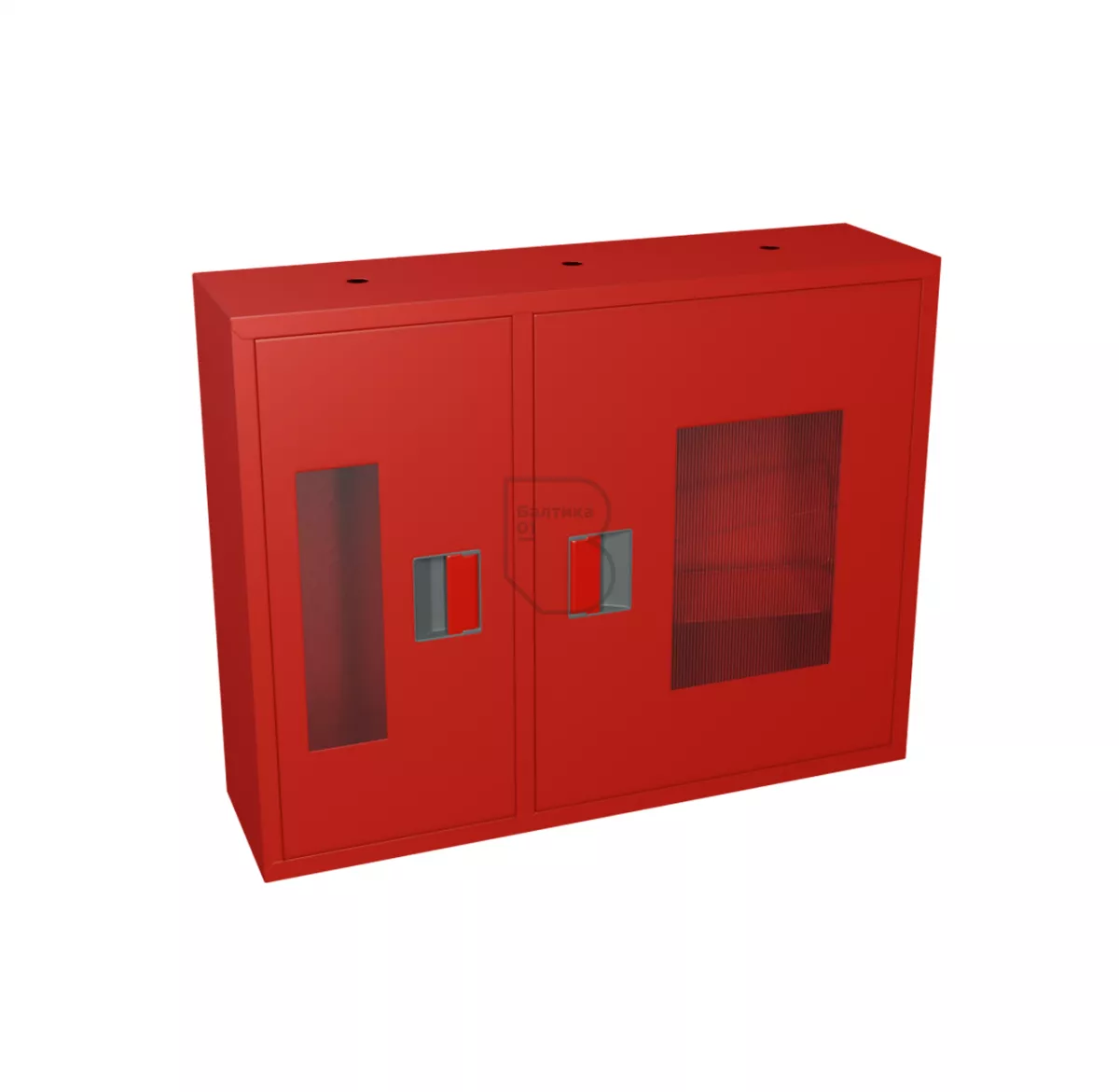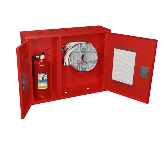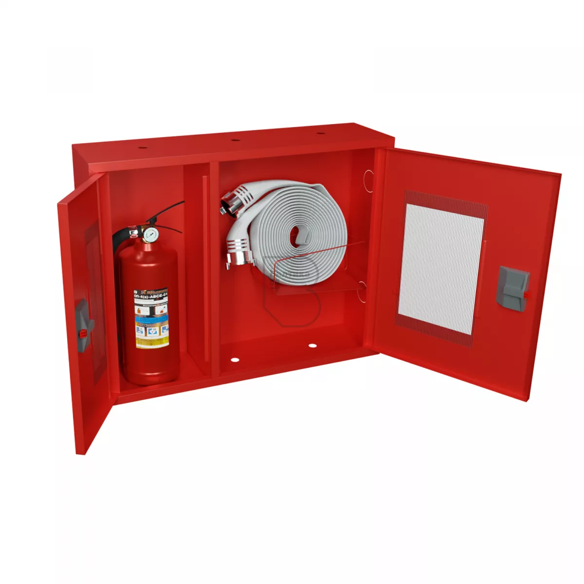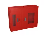 Дверцы пожарного шкафа открываются на 160 градусов. Имеют запорное устройство в виде пластиковой защелки. На каждой дверце имеется смотровое окно со вставкой из поликарбоната.