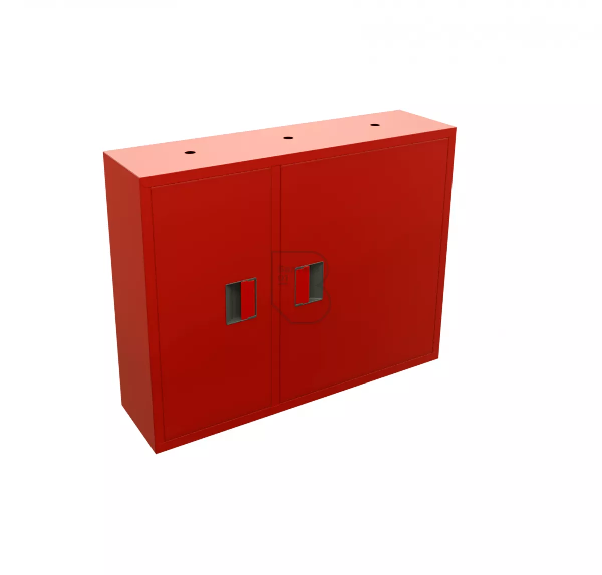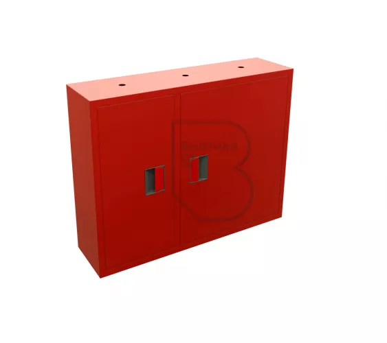 По типу монтажа – навесной, по наличию смотрового окна на дверцах шкафа – закрытый, по цвету изделия – красный (RAL 3000).