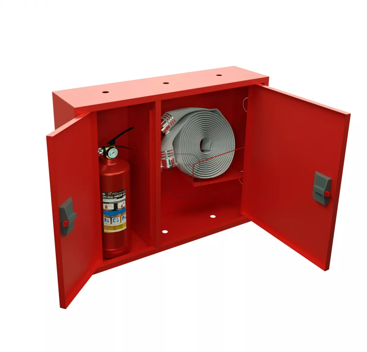 Дверцы пожарного шкафа открываются на 160 градусов. Имеют запорное устройство в виде пластиковой защелки.