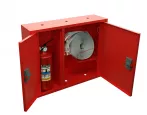 Шкаф пожарный ШПК-315 НЗК – предназначен для размещения и хранения рукава пожарного (диаметром 51 или 66 мм) в сборе, пожарного вентиля (клапана) и одного огнетушителя до 5 литров. Шкаф оборудован кассетой (турелью) для пожарного рукава.